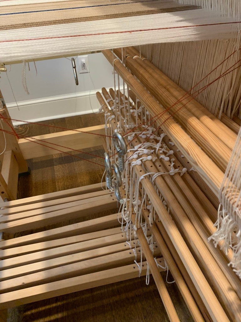 As it’s a gift for my dad, I tried to weave with good thoughts, but it was not easy! If I take this off the loom and it doesn’t completely open up, I cannot be held responsible for what I say. And how much I drink that night. Just sayin’…